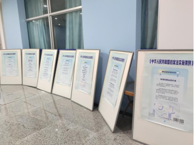 一是面购买中国档案学会设计的《中华人民共和国档案法实施条例》的宣传挂图。档案室工作人员首先进行了深入学习,并于6月份将挂图以展板的形式在学校图书馆一楼大厅进行展出宣传。